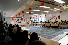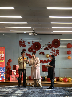 復城辦公區同樣熱鬧非凡;顒蝇F場,彩帶、氣球、燈籠等裝飾品將空間裝點得溫馨而喜慶。隨著歡快的音樂,活動正式開始。“招財進寶”箭指好運,“心有靈犀”考驗搭檔之間的默契,“妙語連珠”技巧與智慧并用,“珠聯璧合”展現平衡技巧,“幸運圓環”收獲滿滿驚喜。大家在歡樂、溫馨的氛圍中迎接新年的到來,共同創造美好的回憶。